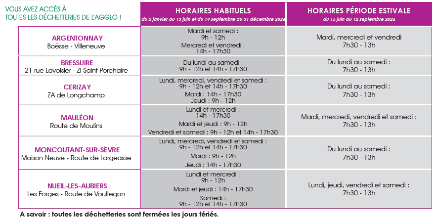 Les horaires des déchetteries du Bocage Bressuirais